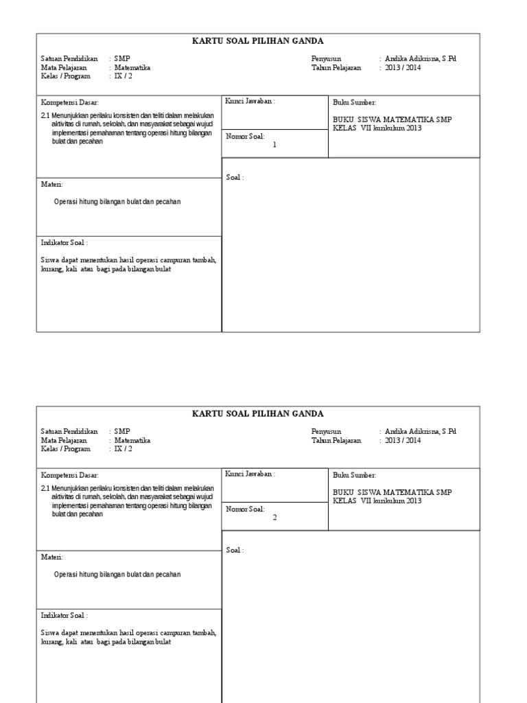 Doc Contoh Kartu Soal Rina Hastin Academia Edu from 0.academia-photos.com Check spelling or type a new query. Maybe you would like to learn more about one of these? We did not find results for: Contoh kartu soal pilihan ganda.