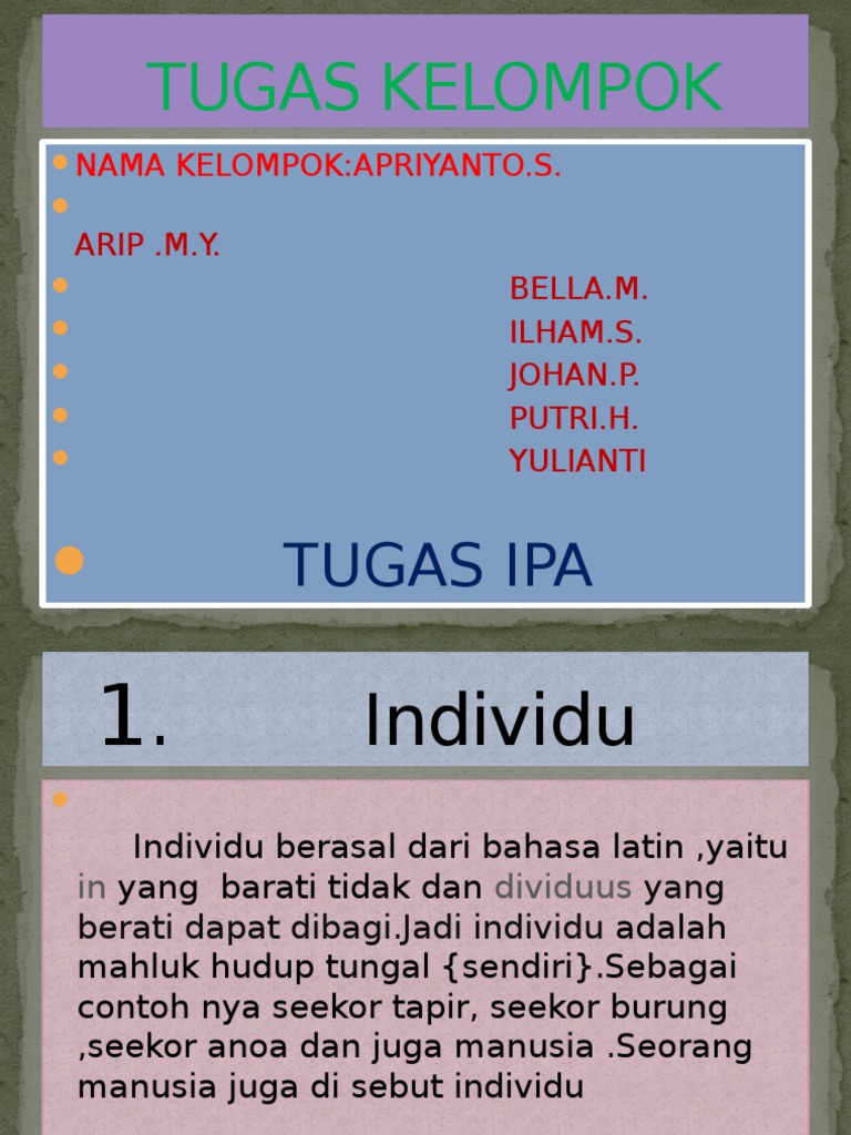 Tugas presentasi ekonomi tentang pola perilaku konsumen oleh kelompok 1. Sebagai bagian yang pertama kali dilihat pembaca cover sangat menentukan apakah pembaca akan meneruskan atau tidak. More images for contoh tugas kelompok » May 24, 2010 · kelompok 6 drs sugeng harianto drs.kiswanto badaruddin s.pd h.muhsin s.pd i maimunah s.pd drs.nur akhmad supian s.pd suprihadi. Mempersiapkan dan merevisi kembali sabtu, 15 febuari 2014 4. Contoh kasus sistem komunikasi kelompok ketika pelajaran mata kuliah psikologi komunikasi telah terjadi berdebatan hangat antara mahasiswa tentang pertanyaan yg diajukan oleh dosen pada waktu itu setelah berdebatan berlangsung cukup lama sang dosen menganalisa ada dua jawaban yg mampu mewakili jawaban tiap tiap mahasiswa yaitu jawaban si. Tugas kelompok manajemen proyek project charter & business case spbu station machine integrated akmazona company disusun oleh: Y'all gonna be in a cutting gang.tugas kelompok kalian memotong. ) i've already paid for this presentation and would like to view it now. Contoh power point tugas kelompok kuliah. Putri aprilla kd (a12.2011.04412) head of software departement : I'm deliberately failing to get work sessions with him.aku dengan sengaja terlibat mengerjakan tugas kelompok dengannya. Ada yang mengobservasi margo city ada yang meneliti di kota kasablanka ada yang meneliti di senayan city dan masih banyak lagi.