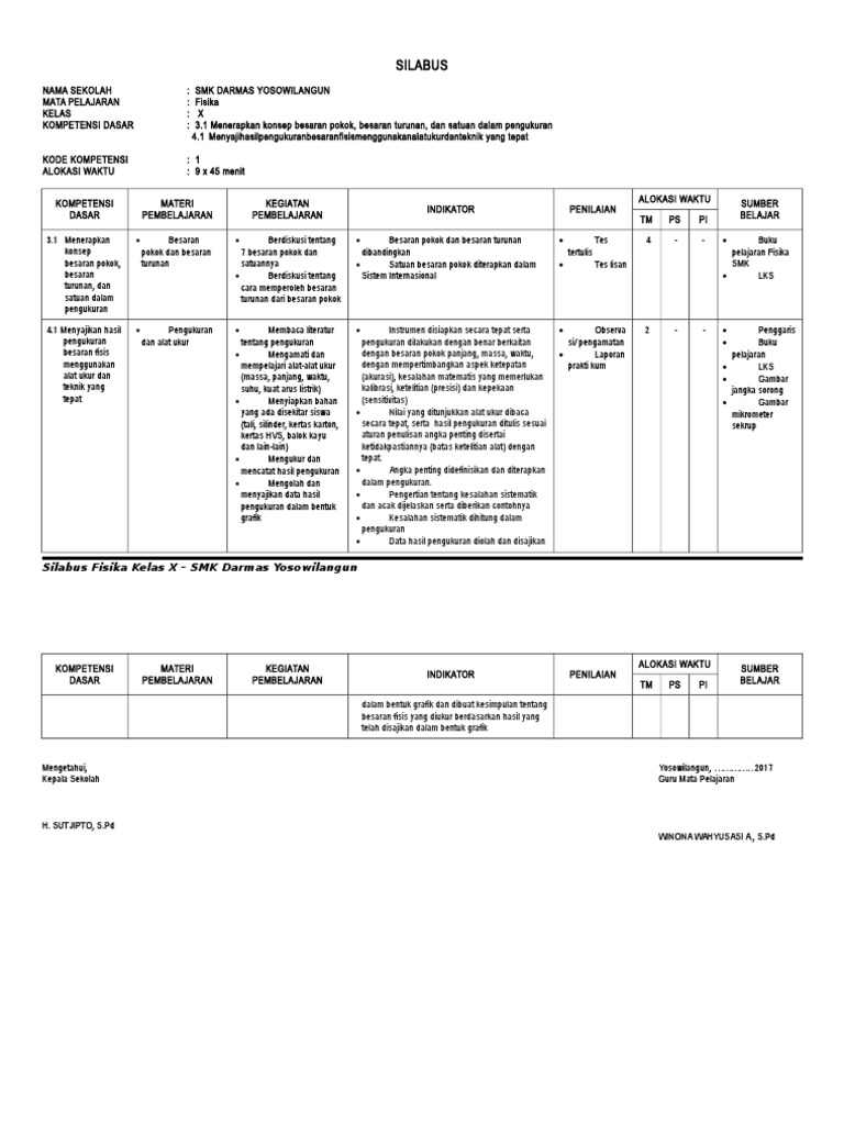 Prota fisika kelas x sma edisi revisi 2021/2022 lengkap prota fisika kelas 10 kuriikulum 2013 revisi di artikel ini dibedakan menjadi 2, yaitu semester 1 dan semester 2. Modul fisika smk kelas 10 ini disusun sesuai dengan standar kompetensi dan kompetensi dasar kurikulum tingkat satuan pendidikan mata pelajaran fisika kelompok teknologi dan kesehatan untuk sekolah menengah kejuruan (smk) / madrasah aliyah kejuruan (mak). Materi fisika kesehatan kurikulum 2013 smk kelas x dan xi (pristiadi utomo 05. Skl fisika kelas 10 kurikulum 2013 tahun 2021/2022, download analisis skl fisika kelas x sma/ma/smk semester 1 dan 2 k13 terbaru. Dalam proses pengeditan, bapak/ibu guru cukup mengganti nama sekolah, guru, dan kepala sekolah saja di bagian lembar pengesahan. Buku fisika kelas x bagian 1 ini sudah melalui tahap pengesahan oleh bsnp atau pusat kurikulum dan perbukuan dan dapat digunakan sebagai referensi pembelajaran. 28 x 45 menit kompeten si dasar materi pembelajar an kegiatan pembelajaran indikator penilaia n alokasi waktu sumber belajar t m ps pi 2.1 menguasai konsep gerak dan gaya 2.3 menghitun g. Rpp fisika kelas x smk materi usaha dan energi rpp rpp usaha dan energi. Smk nurul islam mata pelajaran: Modul belajar fisika smk kelas x, xi, dan xii. Smk plus assuyuthiyyah mata pelajaran: 8 full pdfs related to this paper. Rpp 1 lembar fisika smk kelas x semester 1 edisi revisi 2020 (update).hallo sobat ig (ilmuguru.org).pada kesempatan kali ini admin ingin share informasi mengenai penyusunan/pembuatan rpp 1 lembar jenjang smk/mak khusus untuk kelas 10 terbaru.