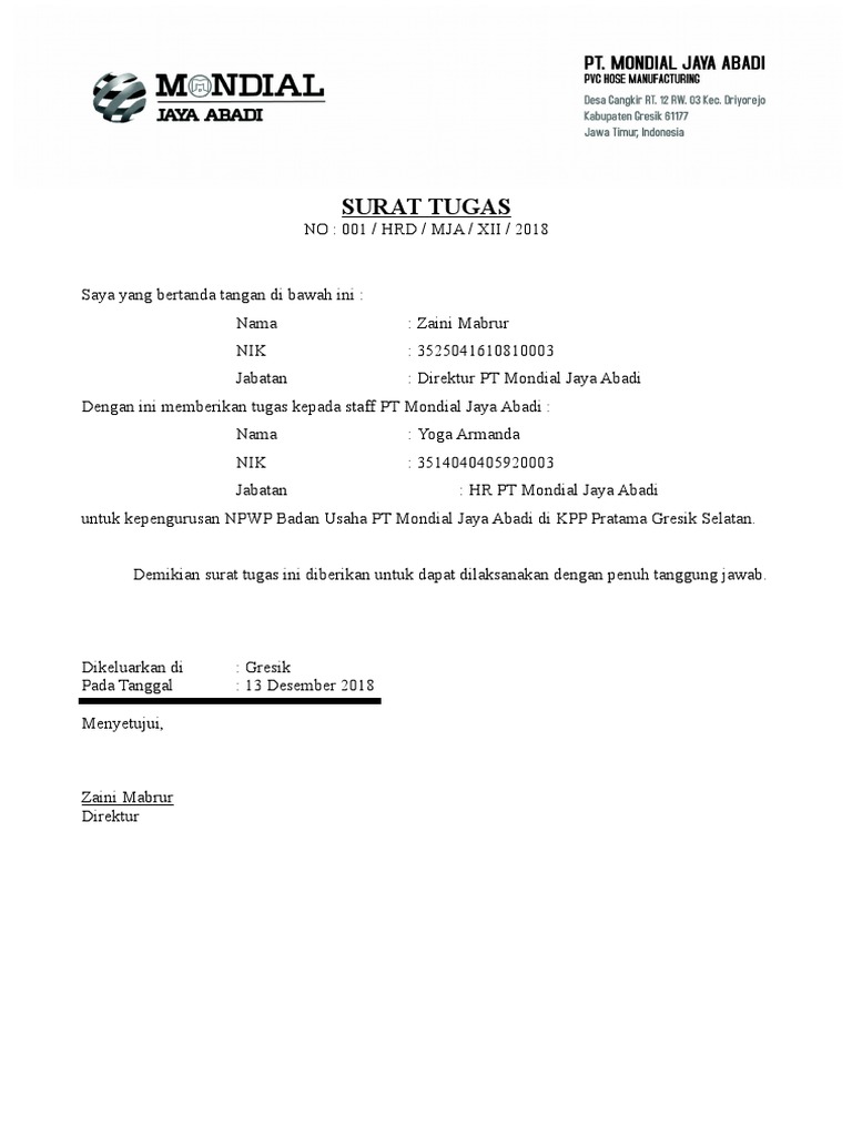 Contoh surat tugas untuk karyawan baru. Direktur pt maju jaya abadi memberikan surat perjalanan dinas kepada Contoh surat tugas guru untuk penanggung jawab kegiatan. Contoh surat tugas guru untuk pelatihan sertifikasi. Pertanyaan interview untuk jadi manager atau direktur!