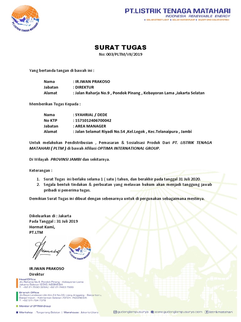 Demikian surat tugas dinas ini diberikan untuk bisa melaksanakan amanah dengan tanggung jawab penuh serta dipergunakan sebagaimana mestinya.